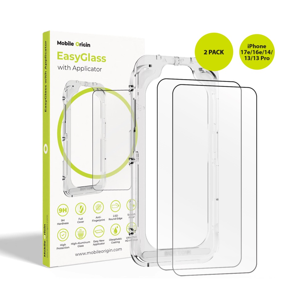 - В комплекта: 2 х Mobile Origin EasyGlass Full Cover Tempered Glass, 1 x рамка за правилно поставяне, 1 x комплект за поставяне
