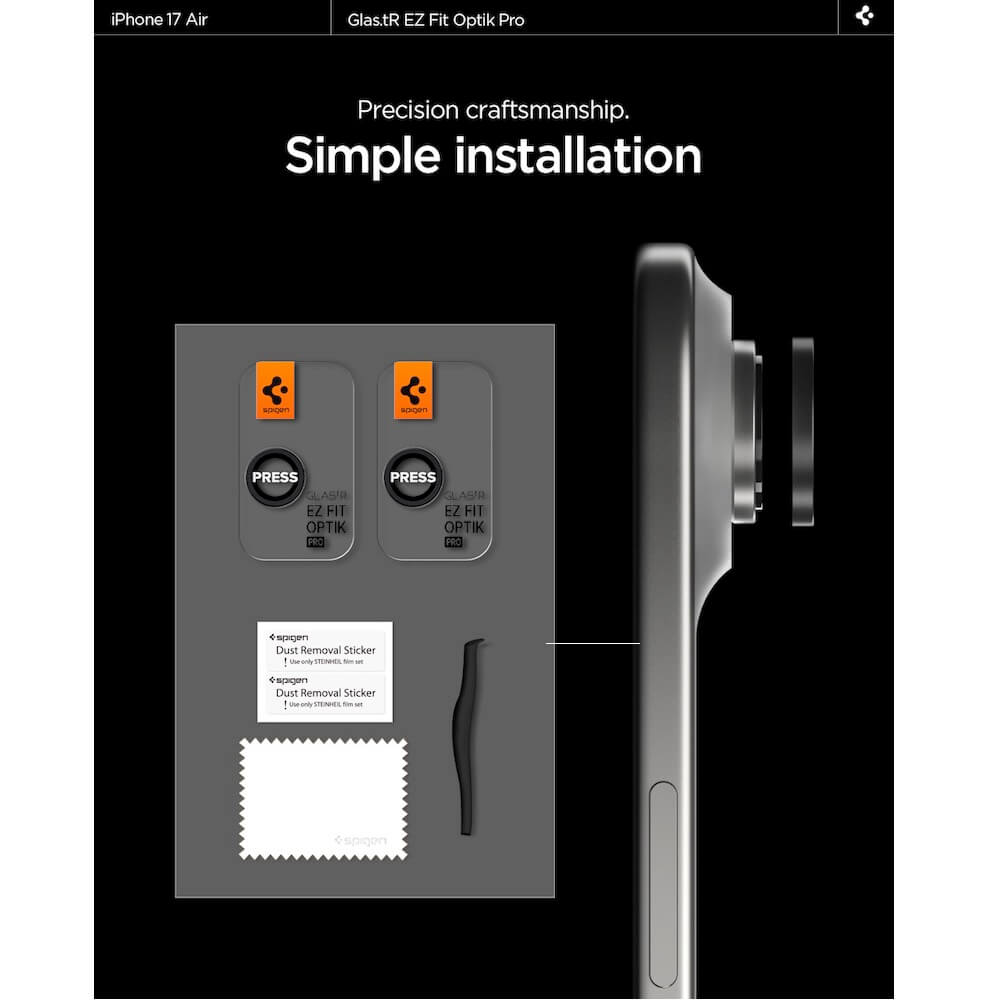 Представяме ви защитния комплект от лещи Spigen Glas.tR EZ Fit Optik Pro, идеален за вашия Apple iPhone 17 Air. С него ще осигурите надеждна защита на камерата на вашето устройство, без да компрометирате качеството на снимките.