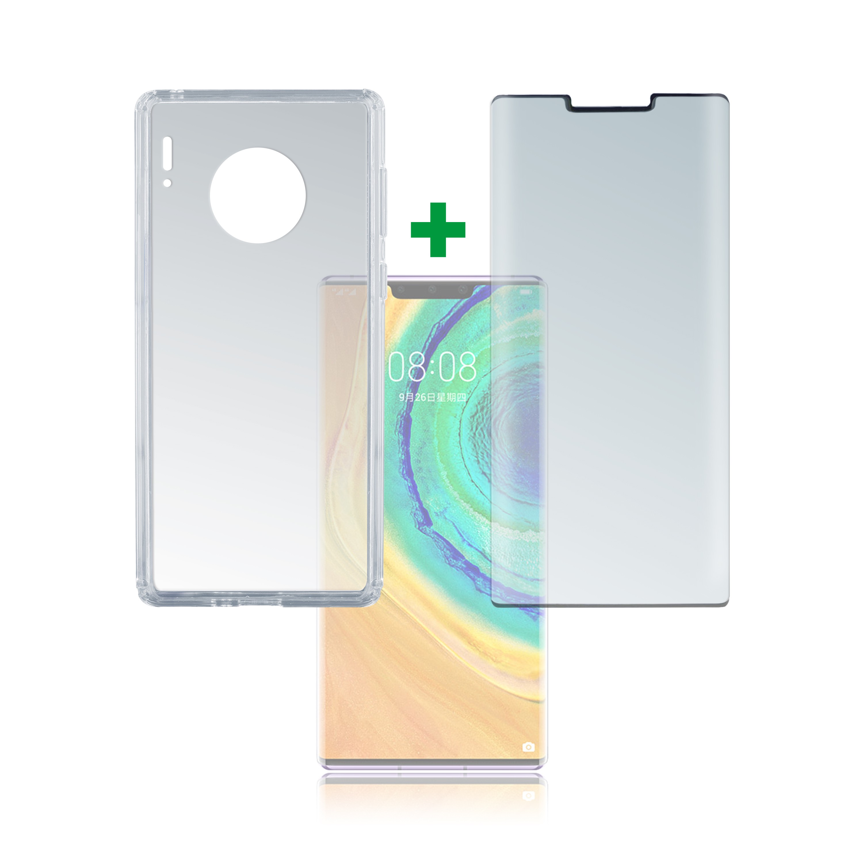 4smarts 360° Case Friendly Premium Protection Set - тънък силиконов кейс и стъклено защитно покритие за дисплея на Huawei Mate 30 Pro, Mate 30 Pro 5G (прозрачен)