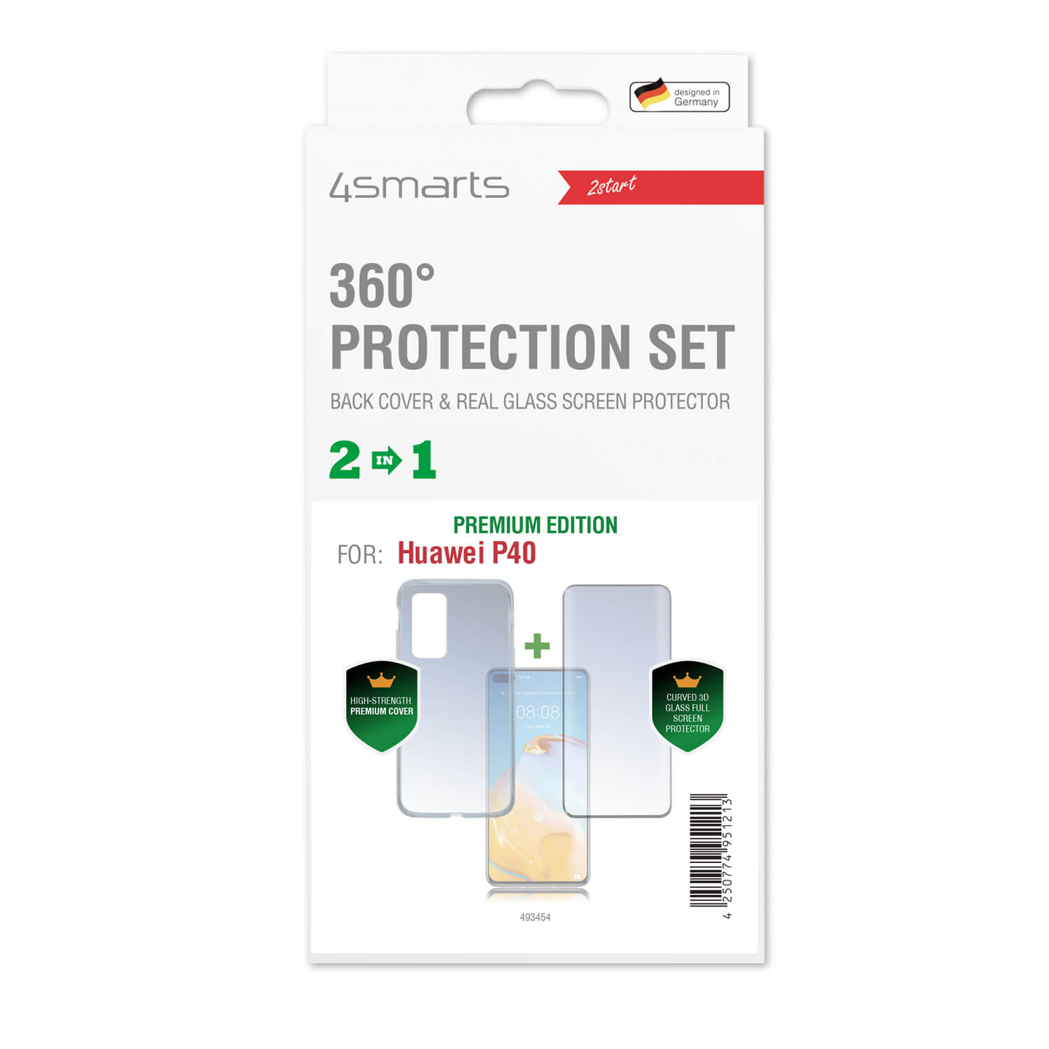 4smarts 360° Case Friendly Premium Protection Set - тънък силиконов кейс и стъклено защитно покритие за дисплея на Huawei P40 (прозрачен)