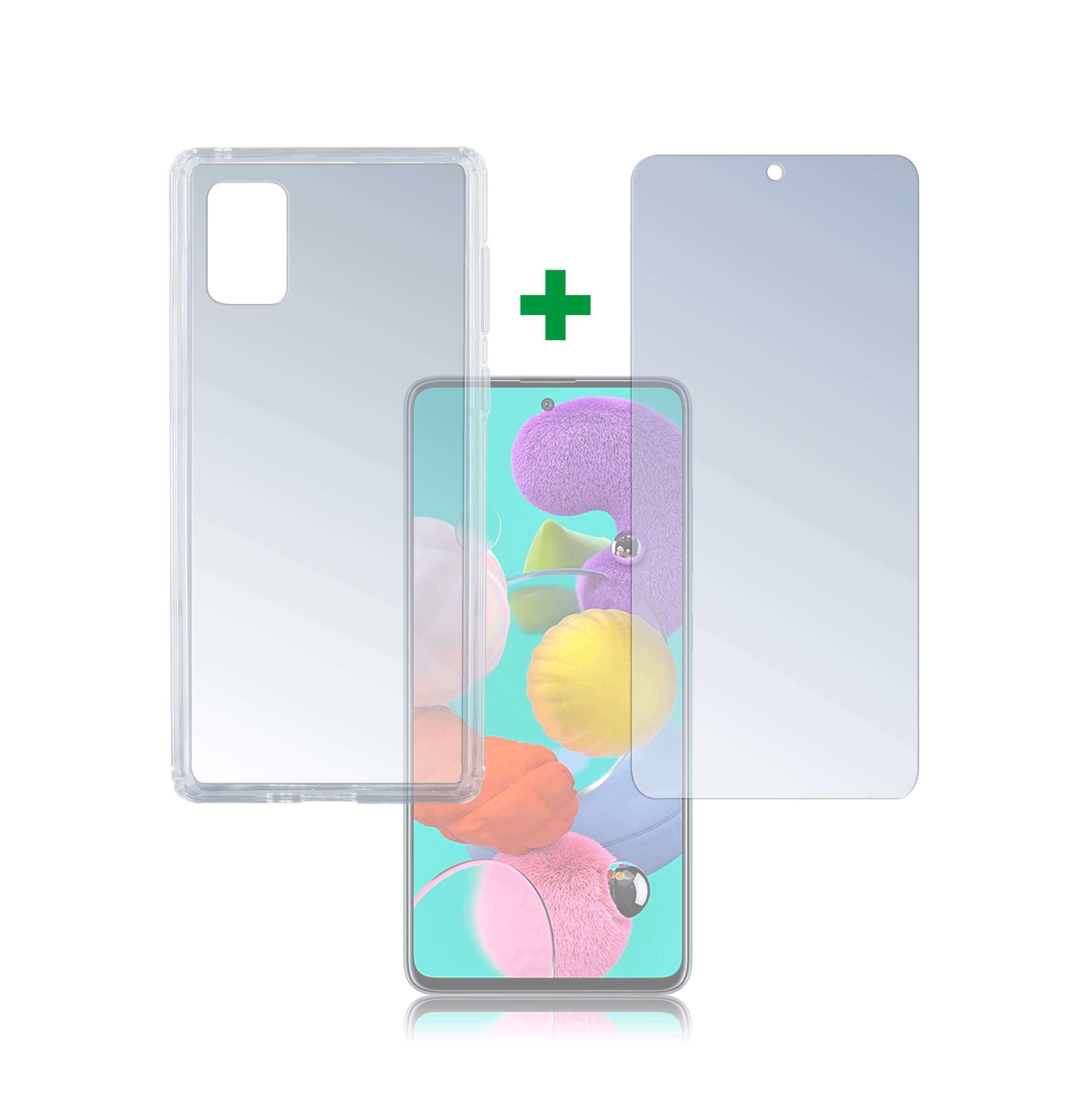 4smarts 360° Protection Set Limited Cover - тънък силиконов кейс и стъклено защитно покритие за дисплея на Samsung Galaxy A51 (прозрачен)