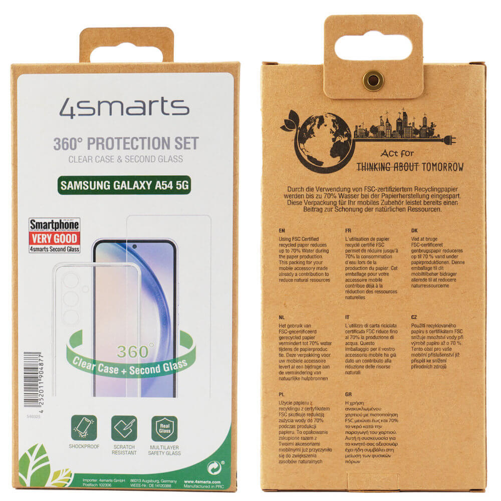 4smarts 360° Protection Set - тънък силиконов кейс и стъклено защитно покритие за дисплея на Samsung Galaxy A54 5G (прозрачен)