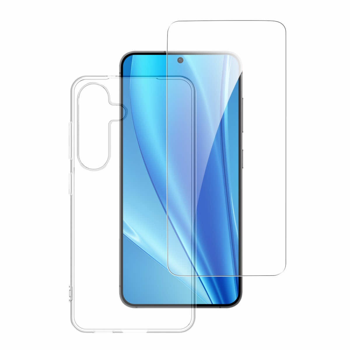 4smarts 360° Protection Set - тънък силиконов кейс и стъклено защитно покритие за дисплея на Samsung Galaxy S25 (прозрачен)