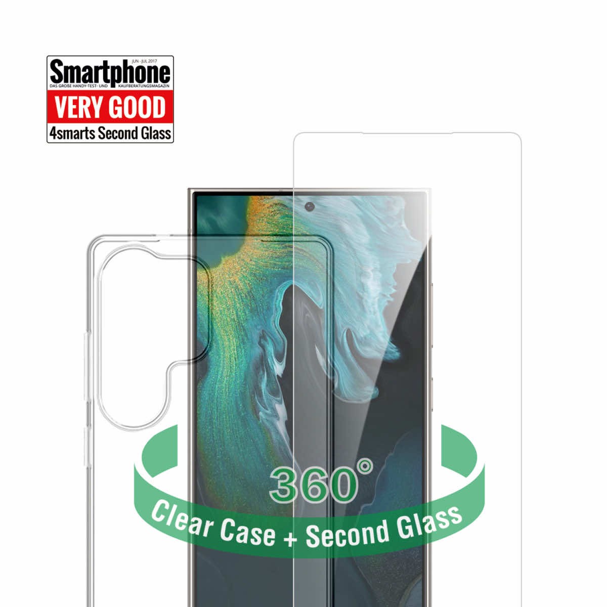 4smarts 360° Protection Set - тънък силиконов кейс и стъклено защитно покритие за дисплея на Samsung Galaxy S25 Ultra (прозрачен)