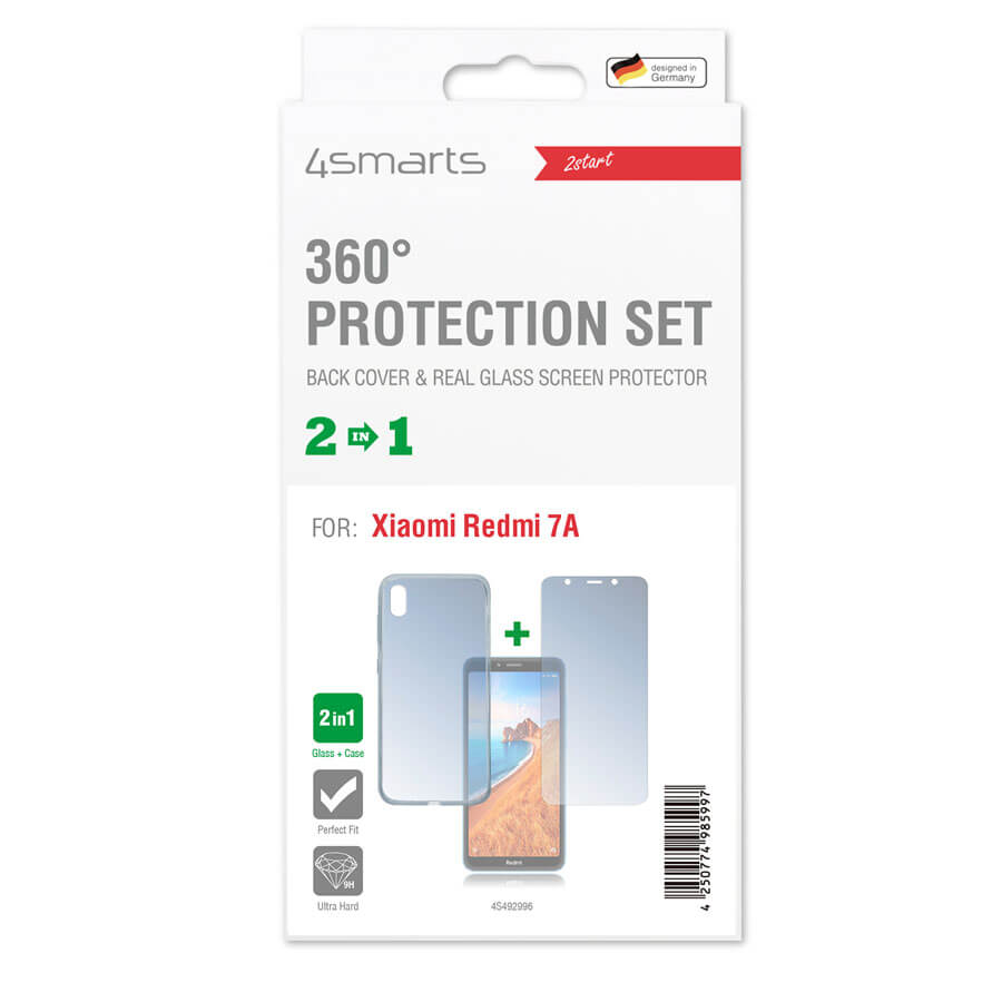 4smarts 360° Protection Set - тънък силиконов кейс и стъклено защитно покритие за дисплея на Xiaomi Redmi 7A (прозрачен)