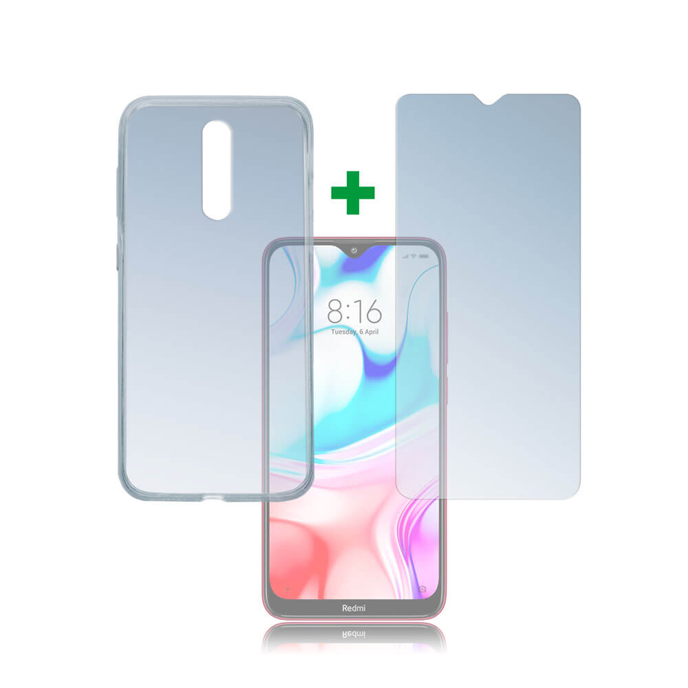 4smarts 360° Protection Set - тънък силиконов кейс и стъклено защитно покритие за дисплея на Xiaomi Redmi 8 (прозрачен)