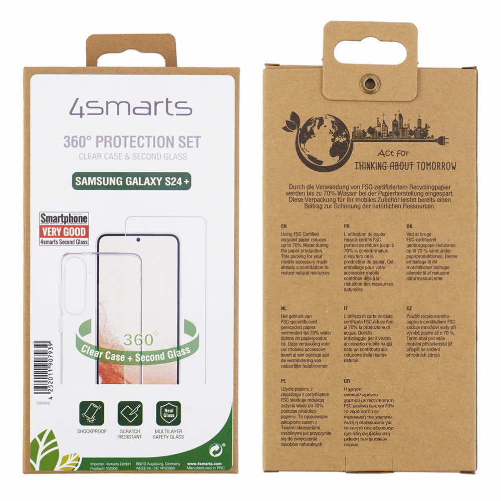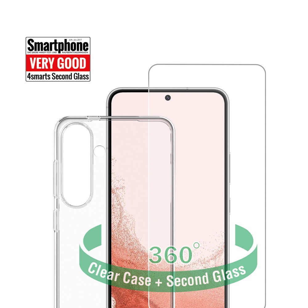 4smarts 360° Starter Set - тънък силиконов кейс и стъклено защитно покритие за дисплея на Samsung Galaxy S24 Plus (прозрачен)