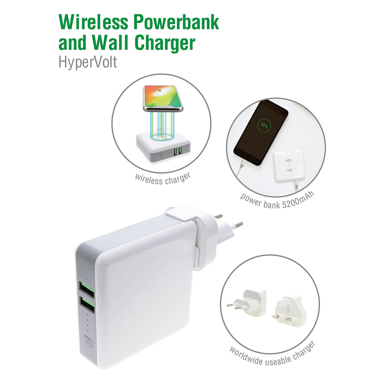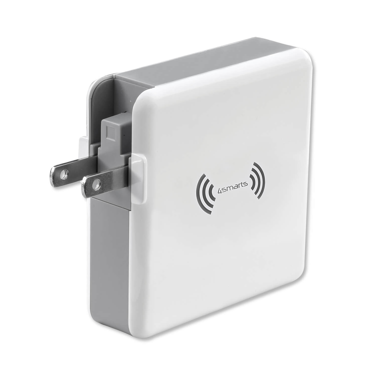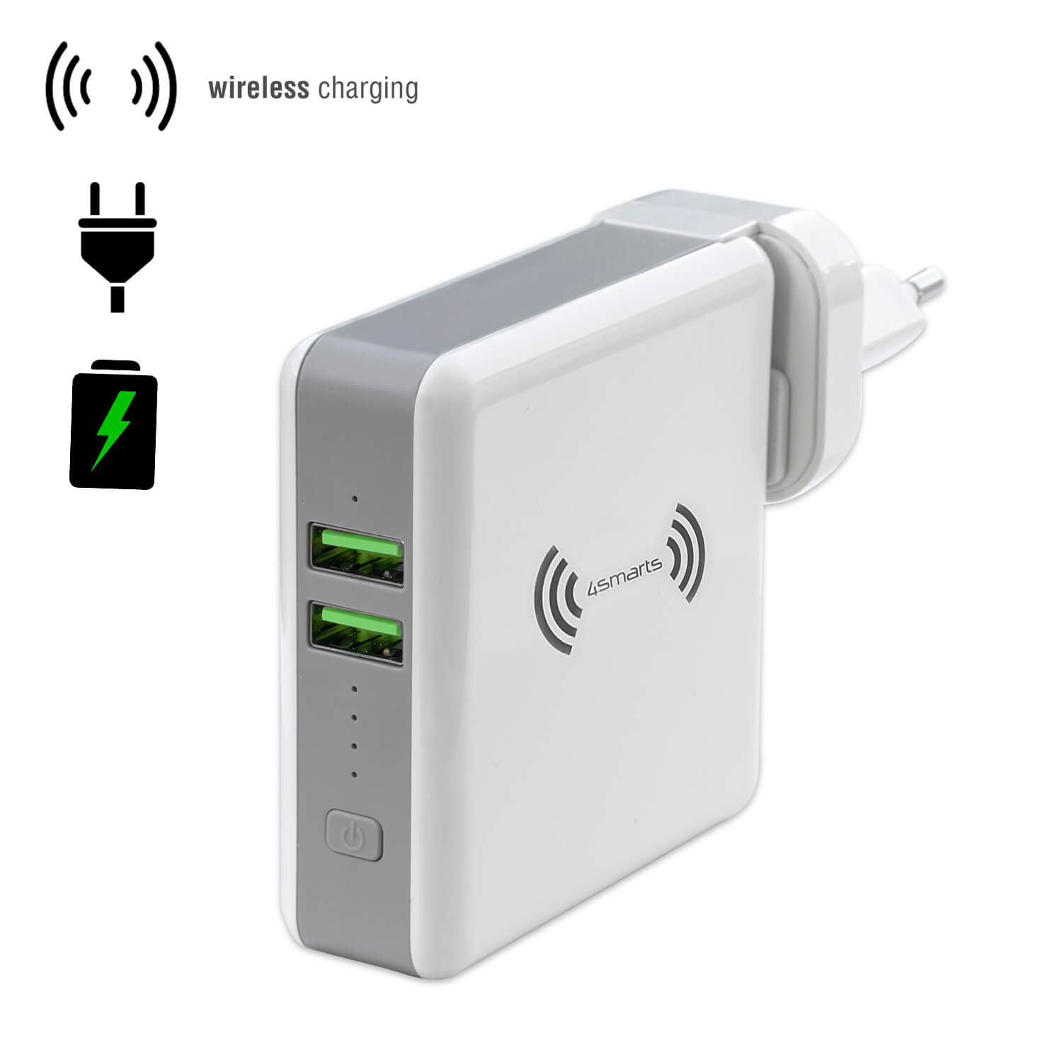 4smarts 3in1 Charger HyperVolt with Wireless Power Bank - захранване за ел. мрежа с два USB изхода, външна батерия и безжично зареждане (бял)