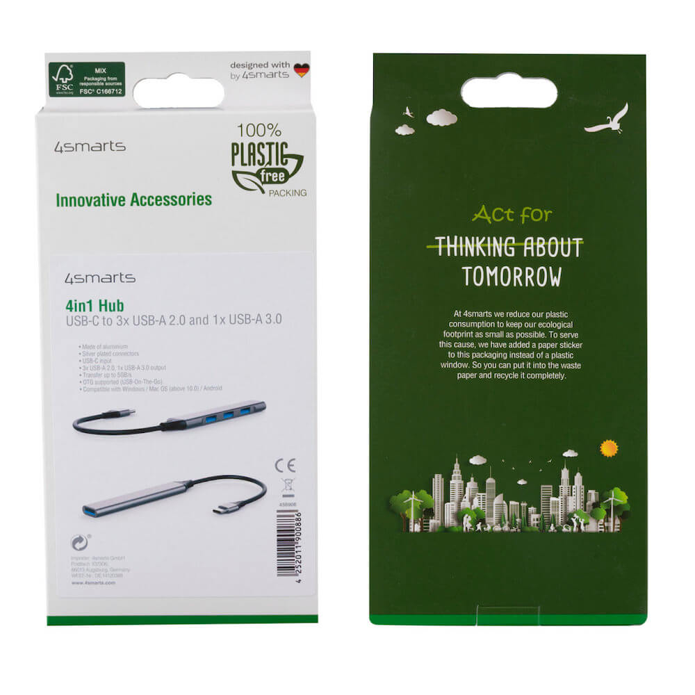 4smarts 4in1 USB-C 4-port USB Hub - 4-портов USB-C хъб за компютри и лаптопи (тъмносив)