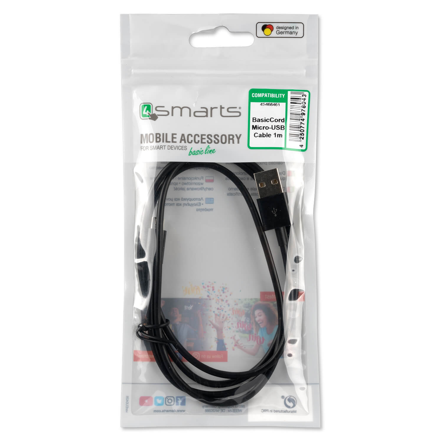4smarts Basic Micro-USB Data Cable BasicCord 1m - компактен microUSB кабел с (100 см)(черен)