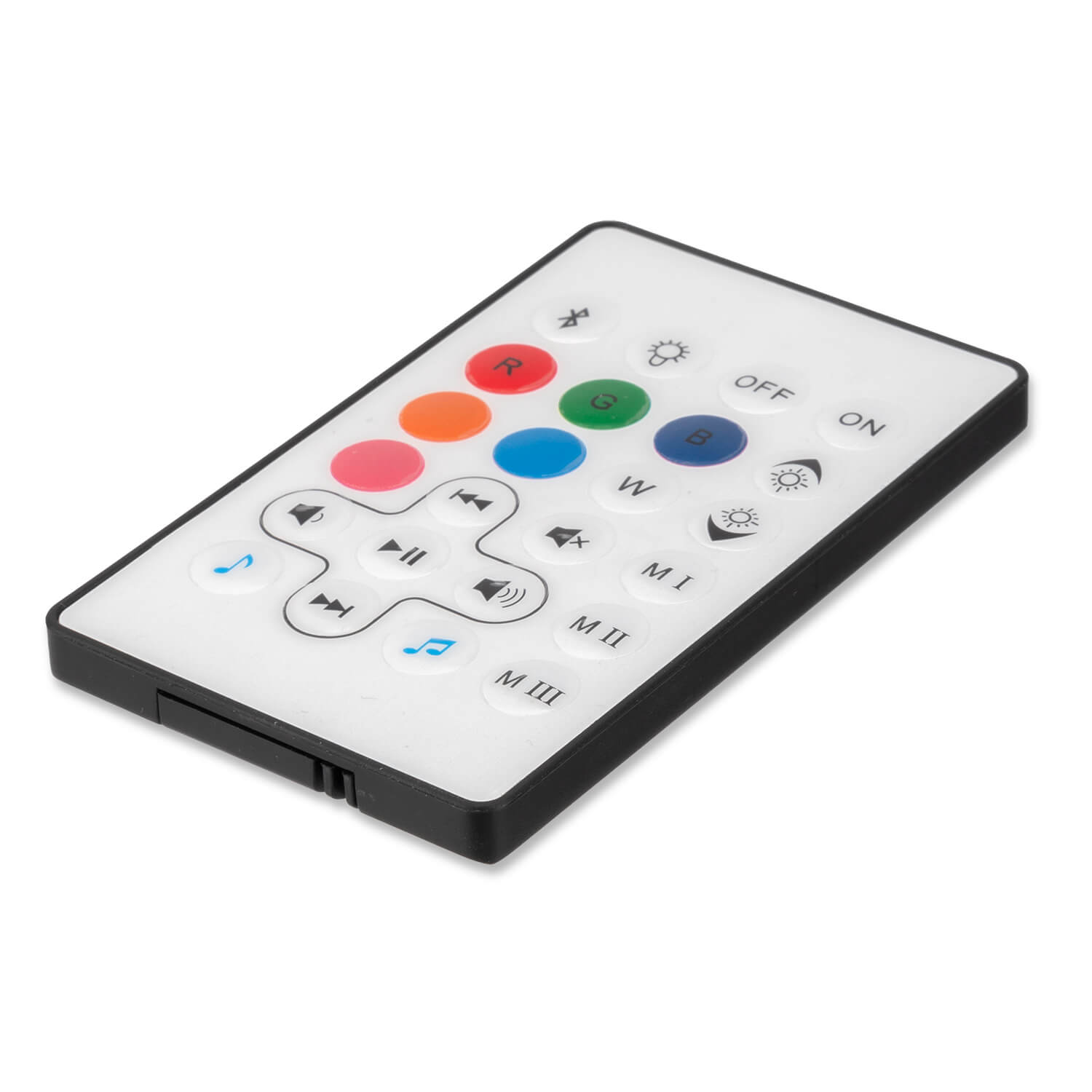 - Активирайте и управлявайте лесно с дистанционното управление. Превключете песните, променете цвета, регулирайте силата на звука или променете яркостта на високоговорителя
