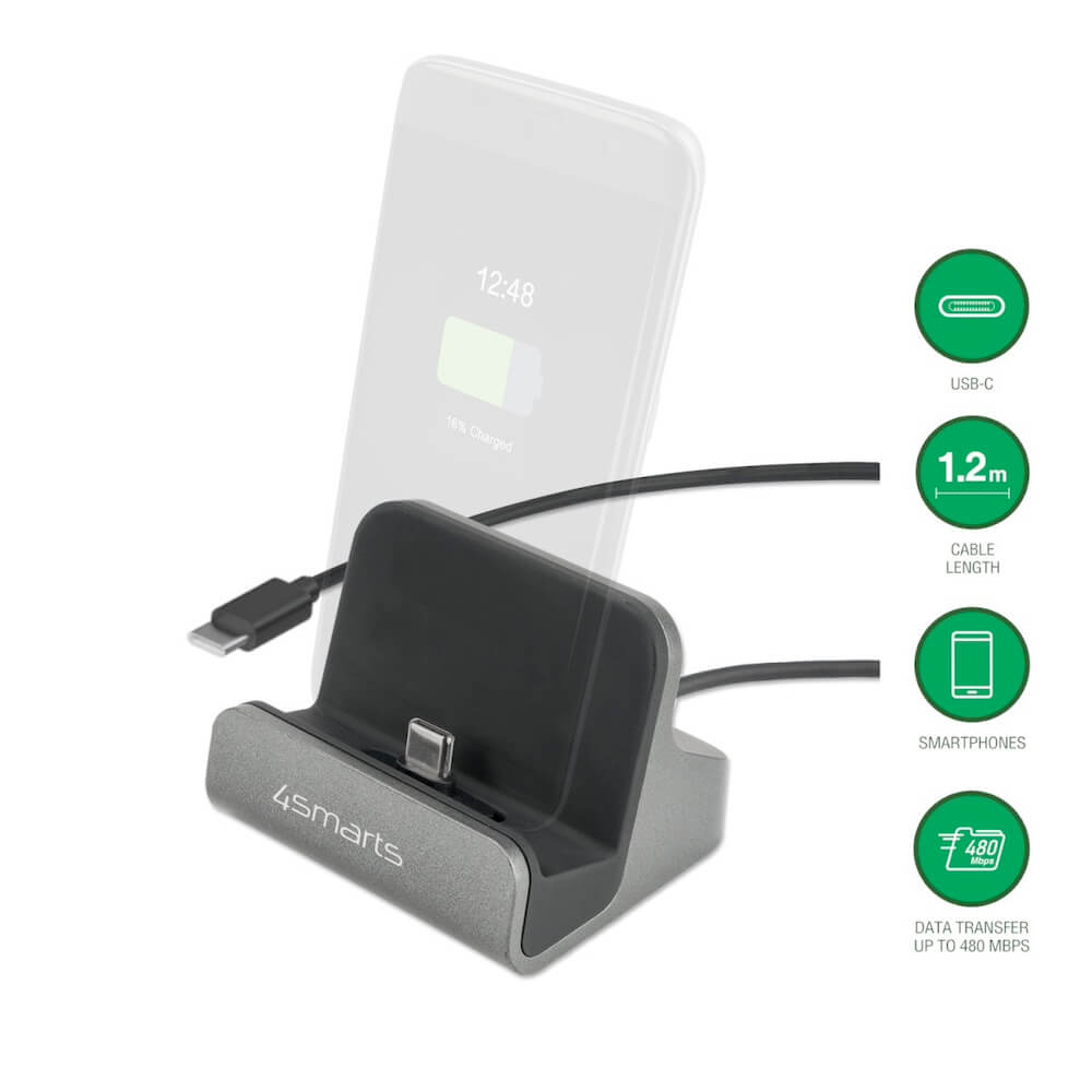 4smarts Charging Station VoltDock USB-C 60W - док станция за зареждане на мобилни устройства с USB-C порт (сив)