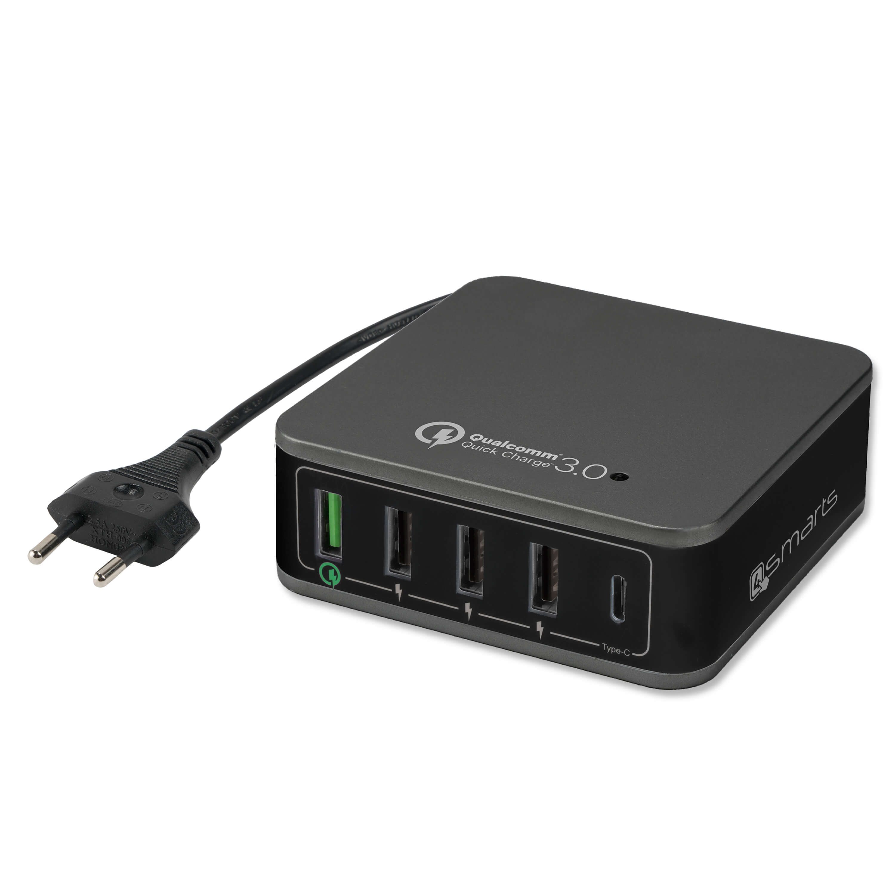 4smarts Charging Station VoltPlug Qualcomm Quick Charge 3.0 & USB Type-C 40W (12A)- захранване с 4хUSB изхода и USB-C изход