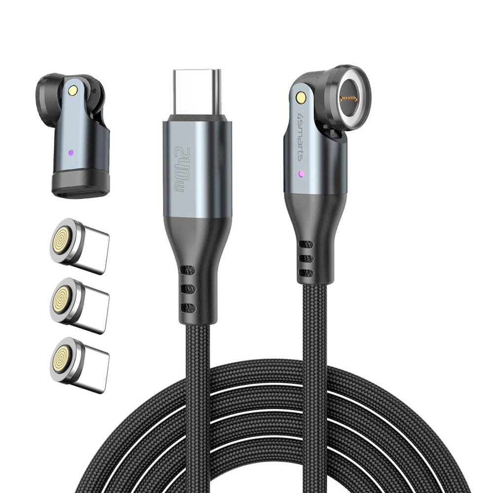 4smarts GravityCord Magnetic USB-C to USB-C Cable Set 240W - USB-C кабел с магнитен накрайник за устройства с USB-C (180см) (черен)