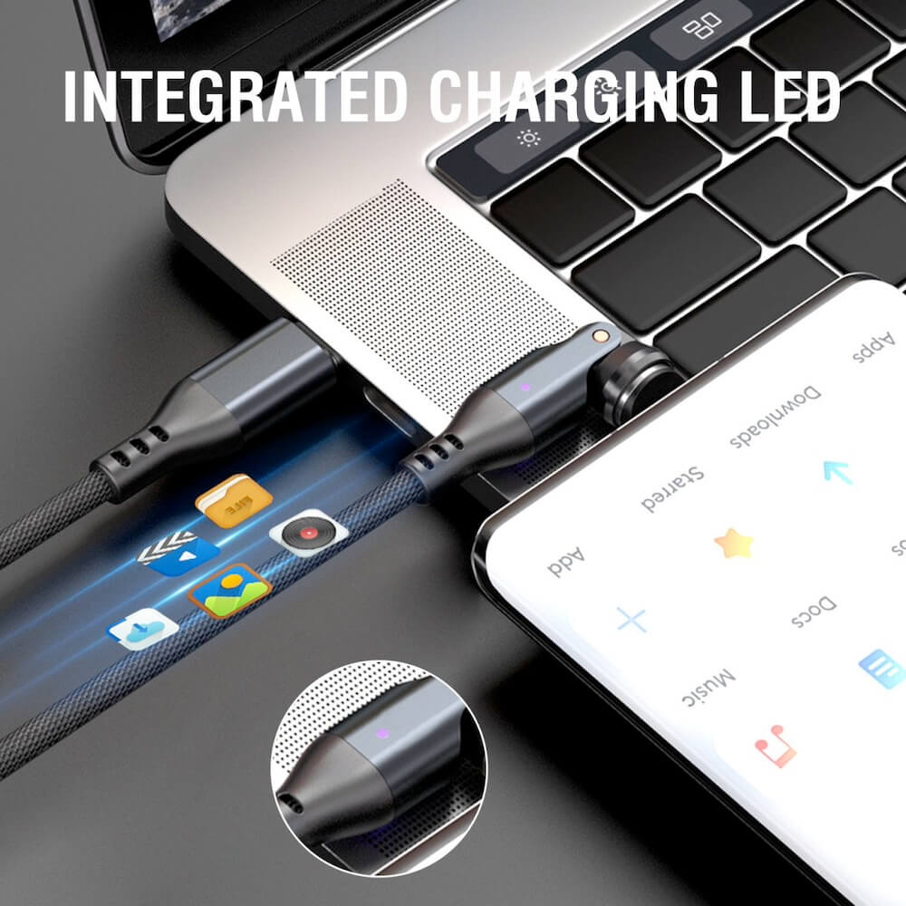 - Здрав, обвит във въжена оплетка кабел за устройства с USB-C порт