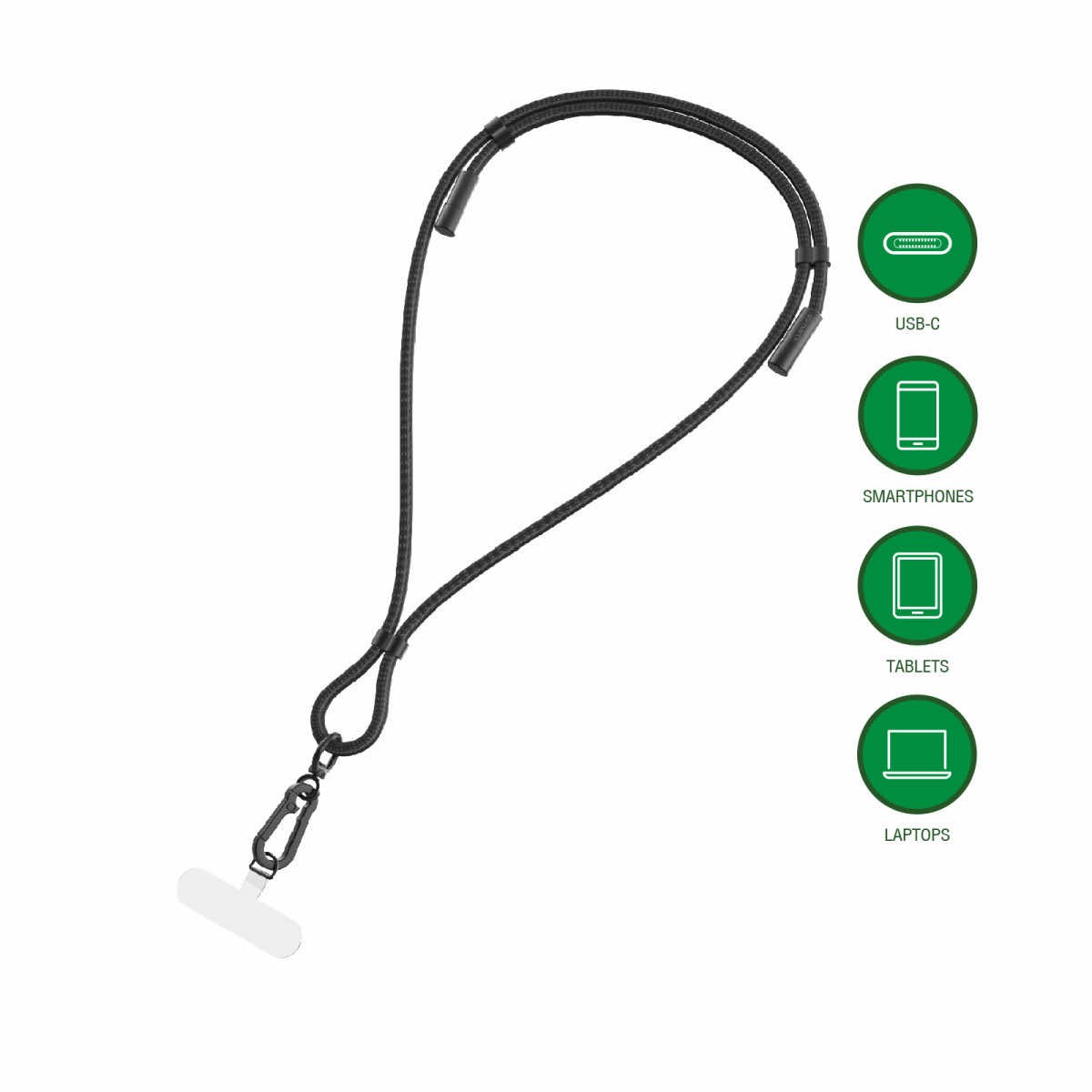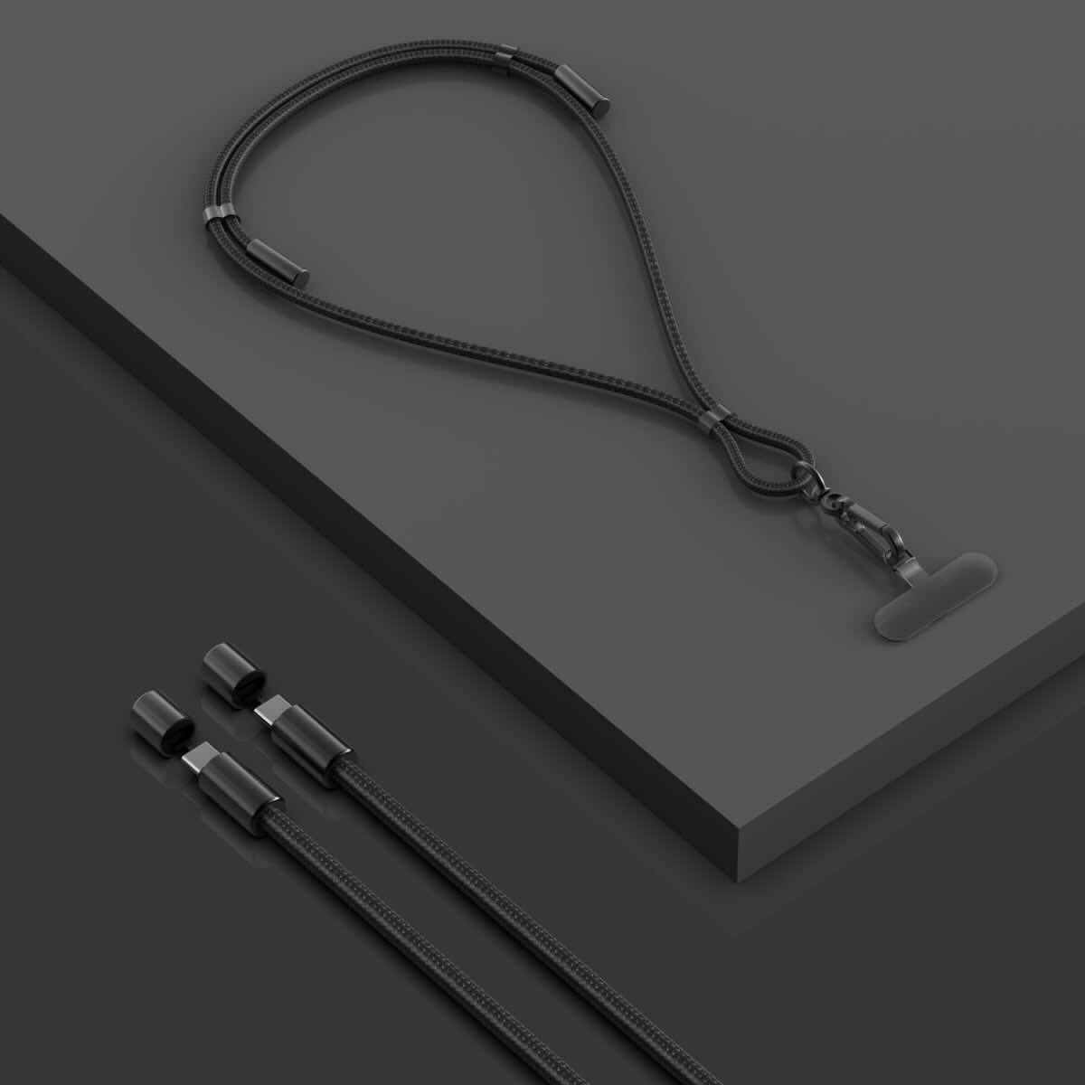 4smarts PhonoLace USB-C Mobile Phone Chain - универсална връзка за носене през врата за смартфони, с вграден USB-C към USB-C кабел (100 см) (черен)