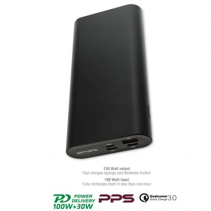 4smarts Power Bank Enterprise 2 20000mAh 130W with Quick Charge and PD - външна батерия с USB-C изход и технологии за бързо зареждане (черен)