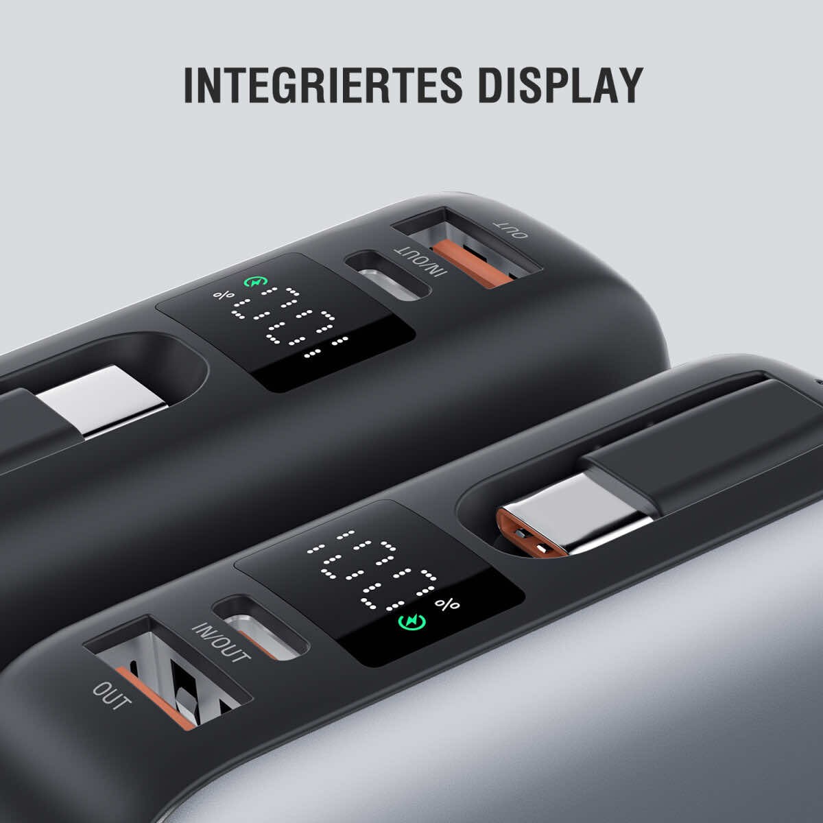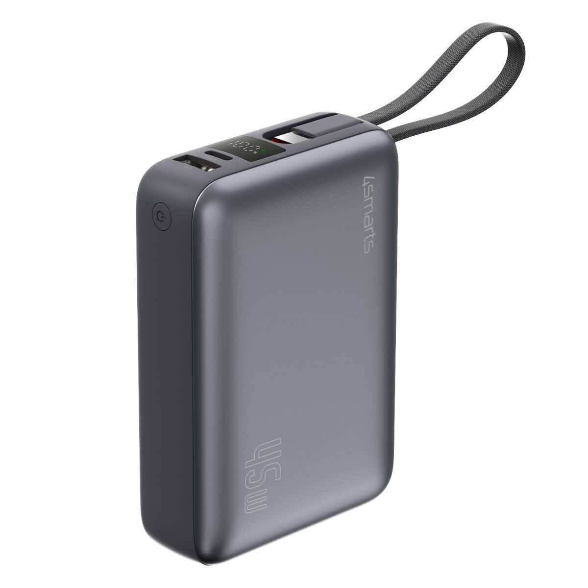 4smarts Power Bank Enterprise Compact 20000 mAh 45W - външна батерия с USB-A и USB-C портове и вграден USB-C кабел (тъмносив)