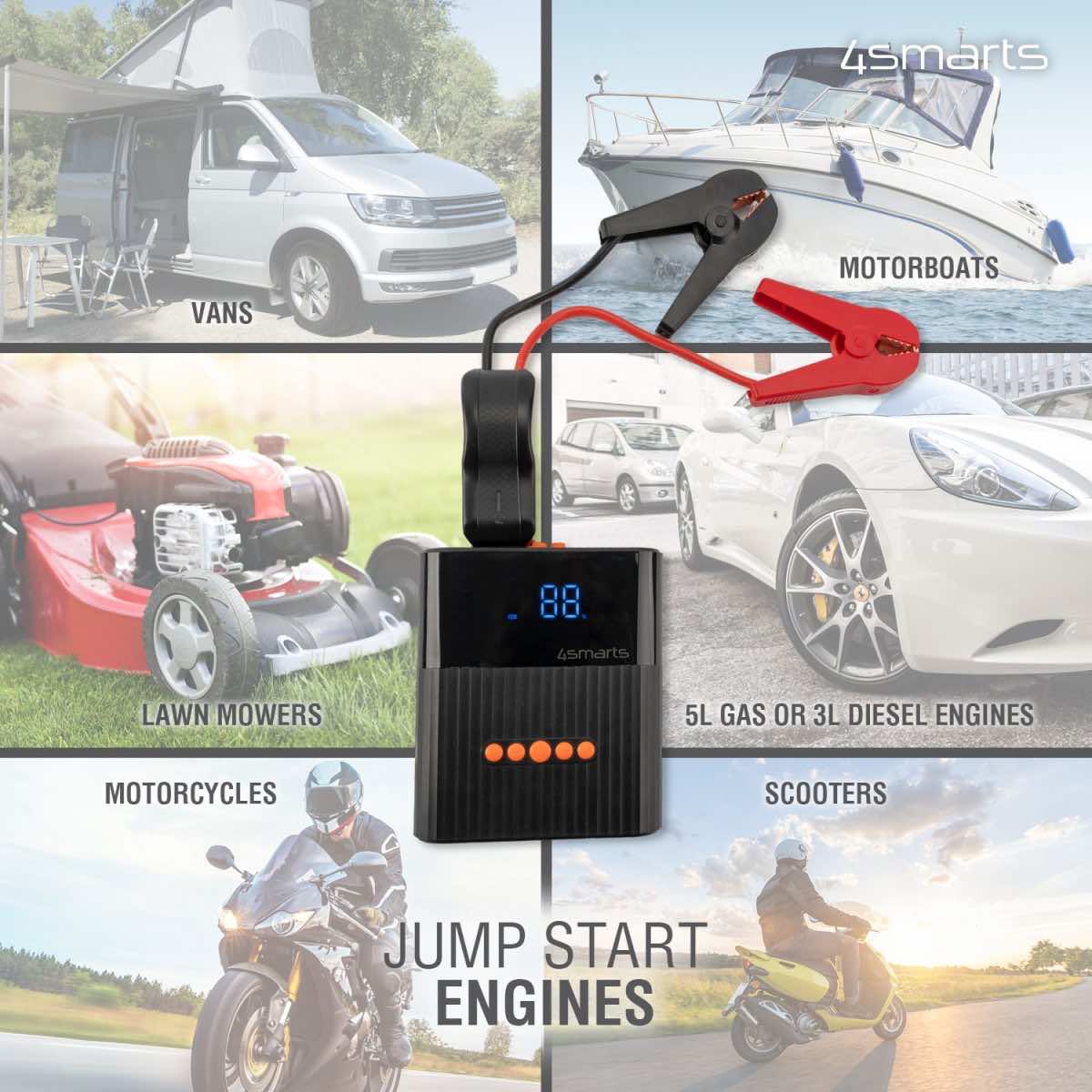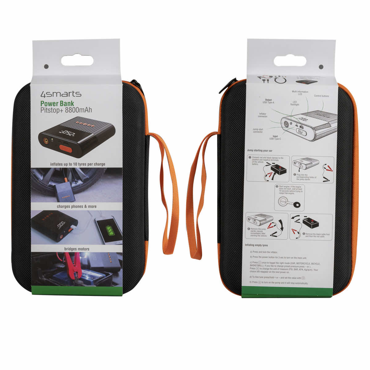 4smarts Power Bank PitStop Plus 3in1 with Jump Starter and Compressor 8800mAh - качествена външна батерия 8800mAh, фенер, JumpStarter и компресор за автомобил (черен)