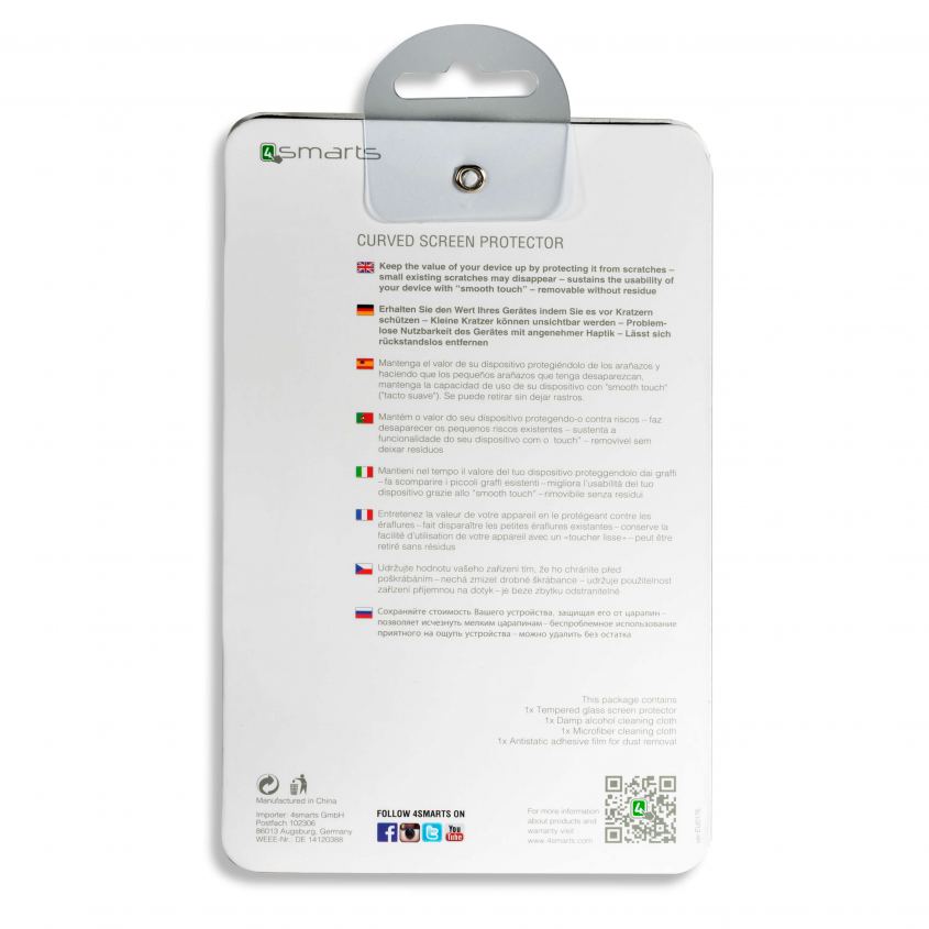 - 1 х 4smart Tempered Glass Curved Protector - 1 x микрофибърна кърпичка - 1 х мокра кърпичка - 1 х антистатична лепенка за премахване на прашинки