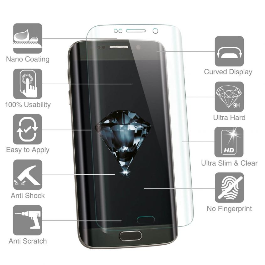 - Висококачествен стъклен скрийн протектор (защитно покритие) с извити ръбове за дисплея на вашето мобилно устройство