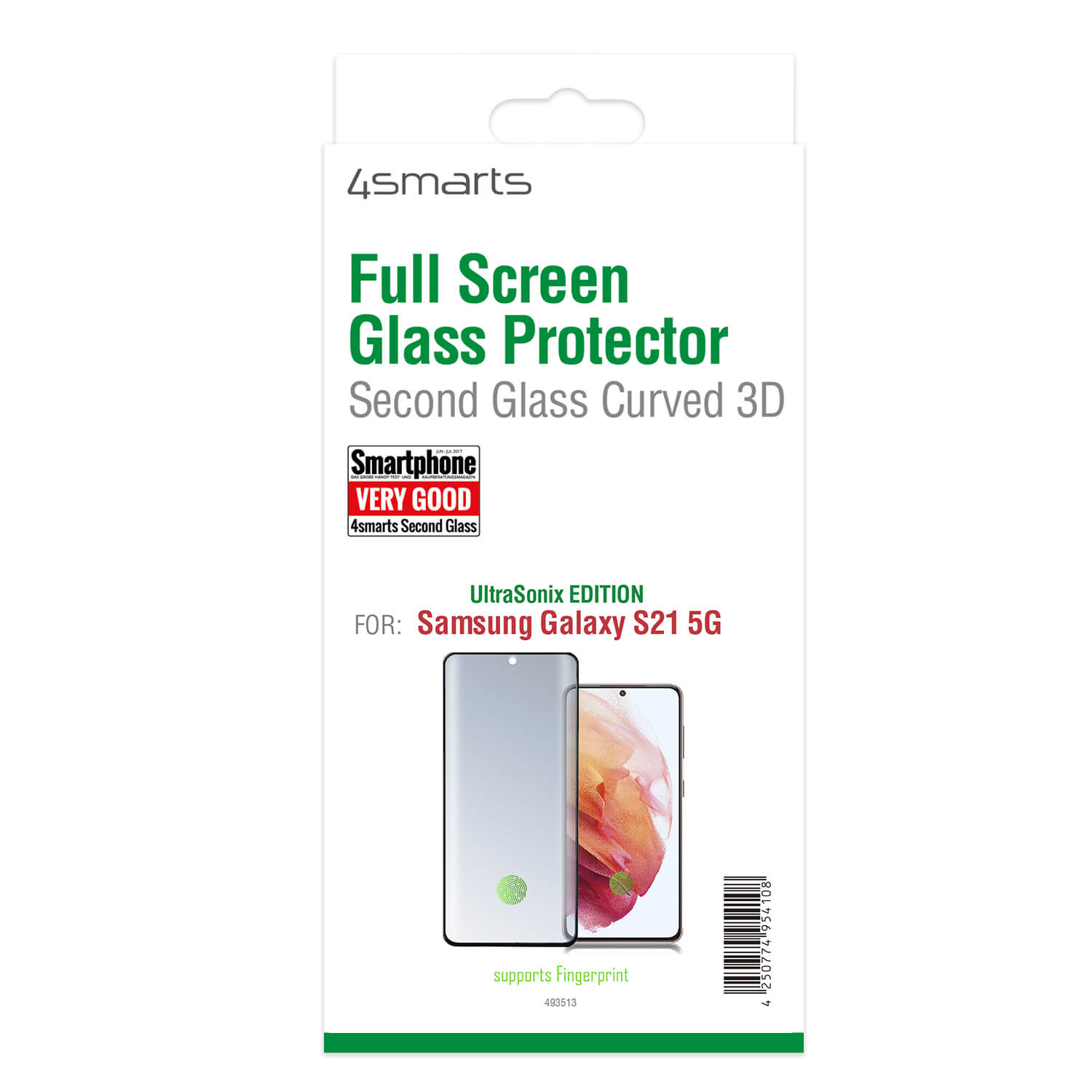 4smarts Second Glass Curved 3D UltraSonix - калено стъклено защитно покритие с извити ръбове за Samsung Galaxy S21 (черен-прозрачен)