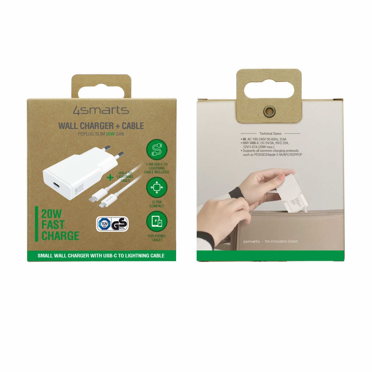 4smarts Slim 20W GaN USB-C PD Fast Charger with USB-C to Lightning Cable (white) - захранване за ел. мрежа с USB-C изход с технология за бързо зареждане и USB-C към Lightning кабел (бял)