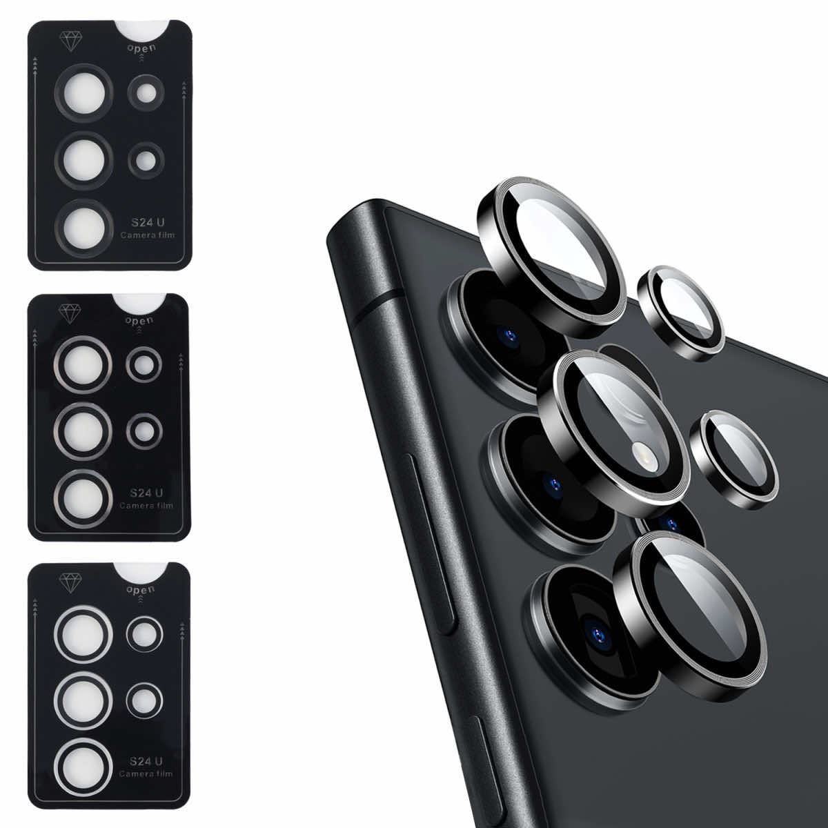 - • Четири комплекта качествени стъклени покрития за камерата на Galaxy S24 Ultra