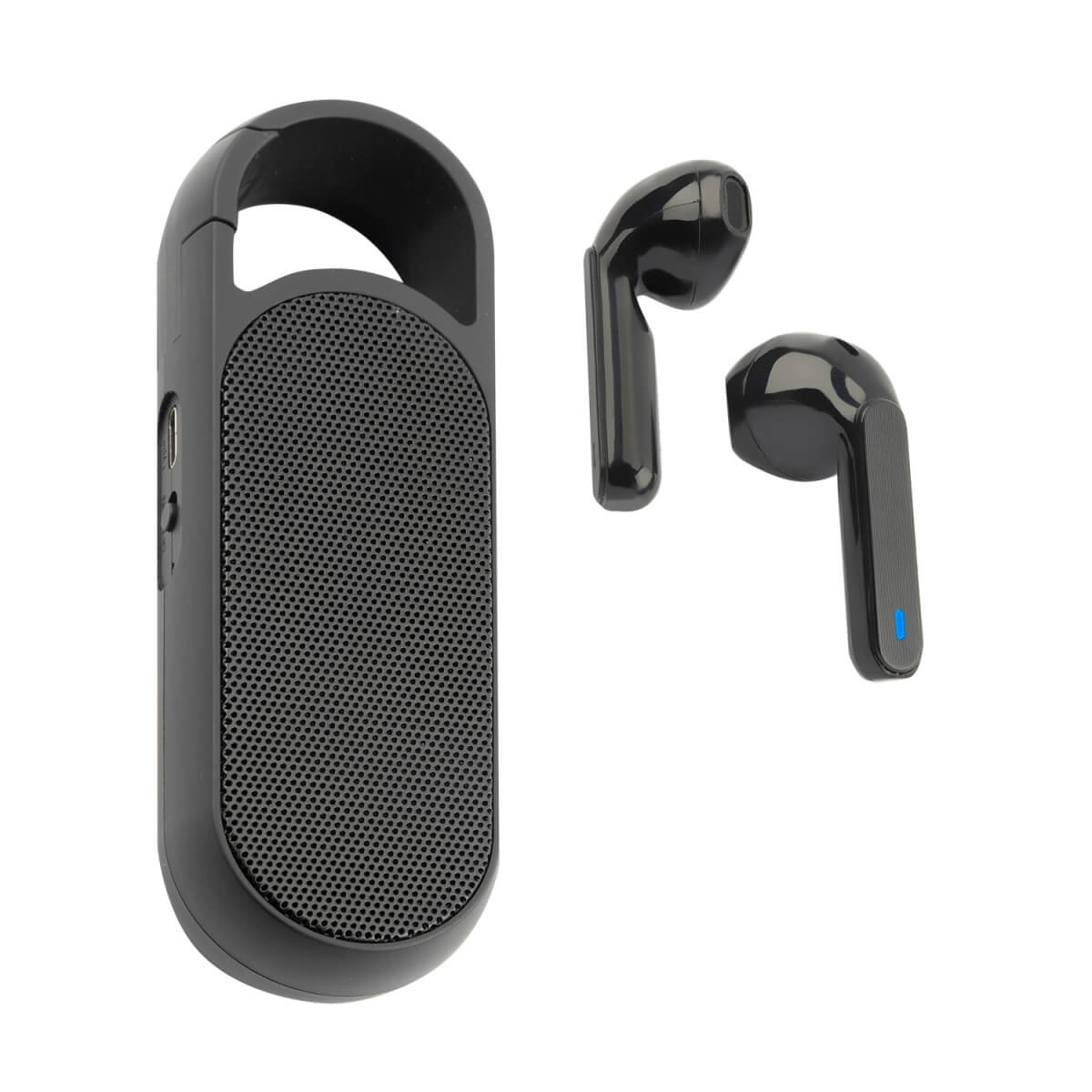 - Иновативна комбинация от TWS слушалки с микрофон и безжичен спийкър. С този комплект, може да слушате любимата си музика за едно и поотделно