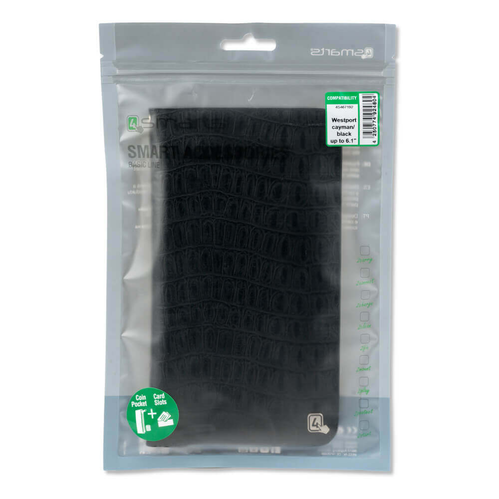 4smarts Ultimag Wallet Westport Reptile Case - универсален кожен калъф с магнитно захващане за смартфони до 6.1 инча (черен)