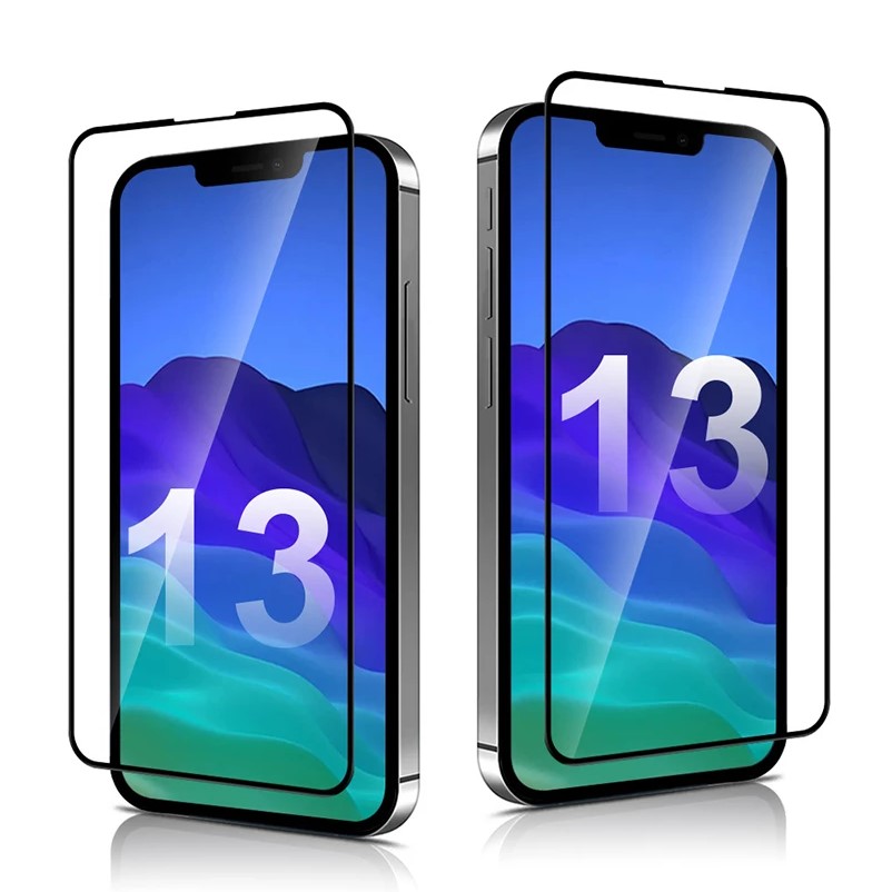 9D Glass Full Glass - стъклен протектор за цялото стъкло с лепило по целия екран за iPhone 13 Pro Max (черен-прозрачен)