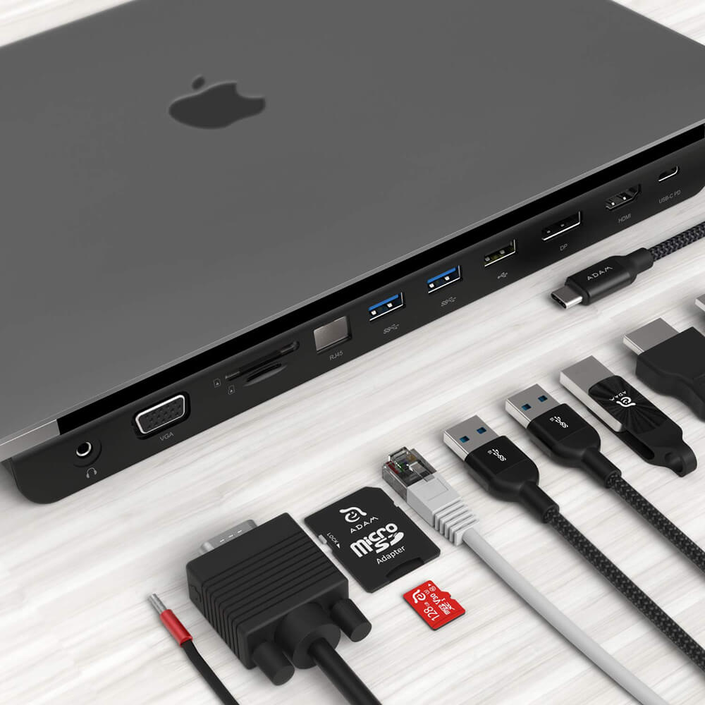 Adam Elements CASA Hub Pro USB-C - мултифункционален хъб за свързване на допълнителна периферия за Macbook и USB-C устройства (черен)