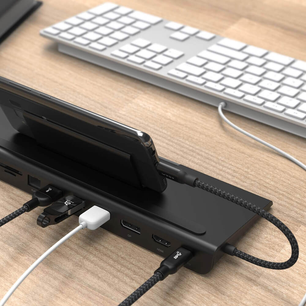 - Възможност за поставяне на смартфон, благодарение на интегрираната в хъба поставка
