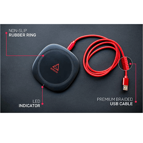 - Издръжливият найлонов USB кабел с оплетка осигурява стабилно и постоянно захранване на безжичното зареждане