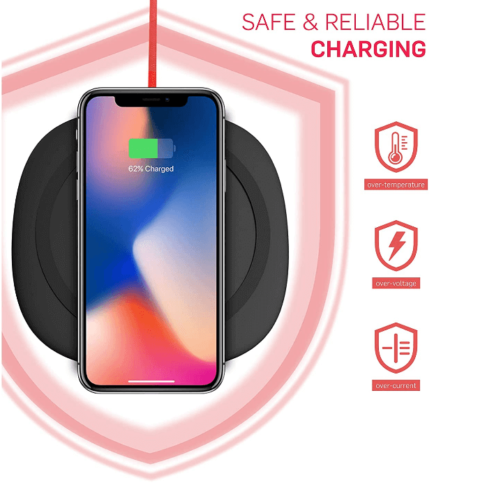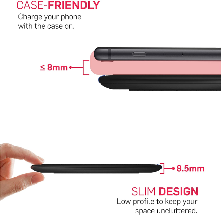 - С височина по-малка от 1 см и ширина от 11 см, това безжично зарядно устройство се побира дискретно на вашето бюро, страничната маса или плот
