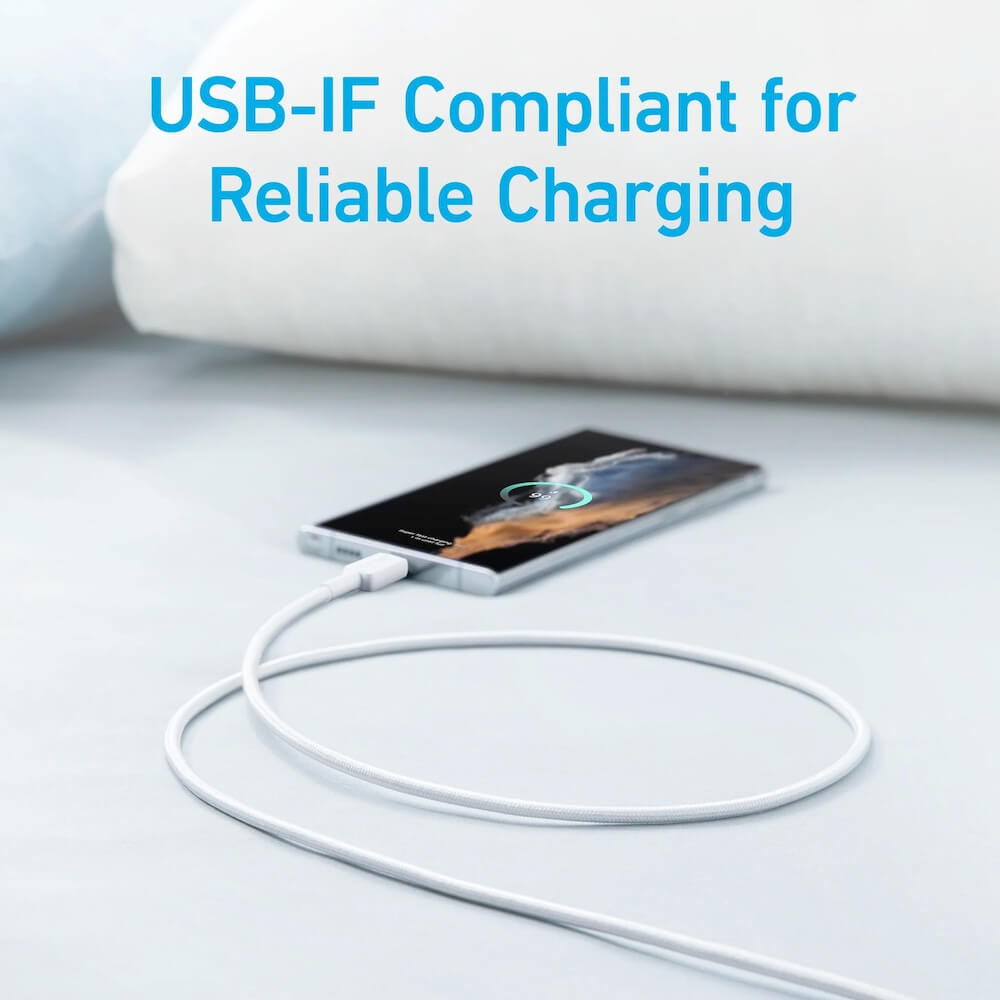 Anker 322 USB-A to USB-C Cable - здрав кабел с въжена оплетка и бързо зареждане за устройства с USB-C порт (180 см) (бял)