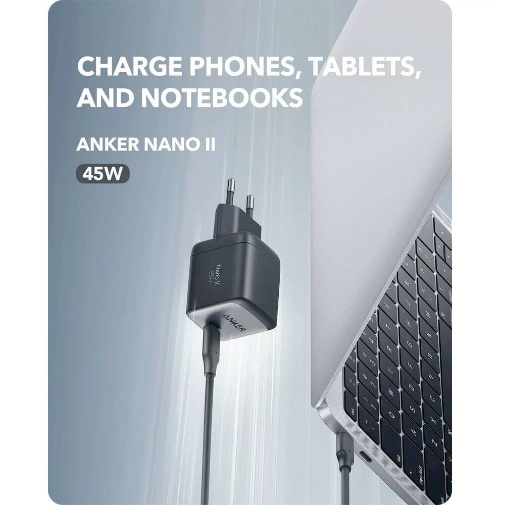 Anker 713 PowerPort Nano II 45W Wall Charger - захранване за ел. мрежа с USB-C изход с технология за бързо зареждане (черен)