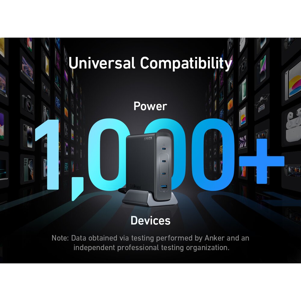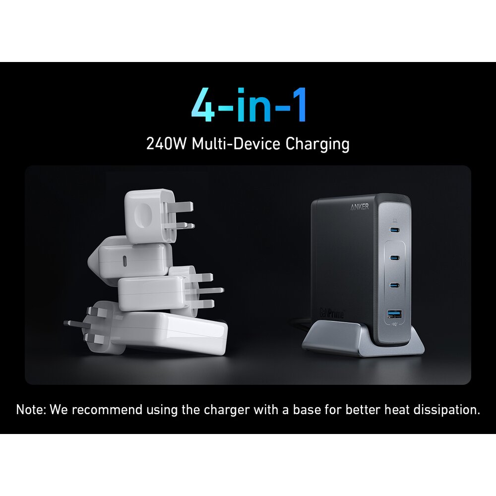 Anker 737 GaN Prime 240W - захранване за ел. мрежа за лаптопи, смартфони и таблети с USB-A и 3xUSB-C изходи с технология за бързо зареждане (черен)