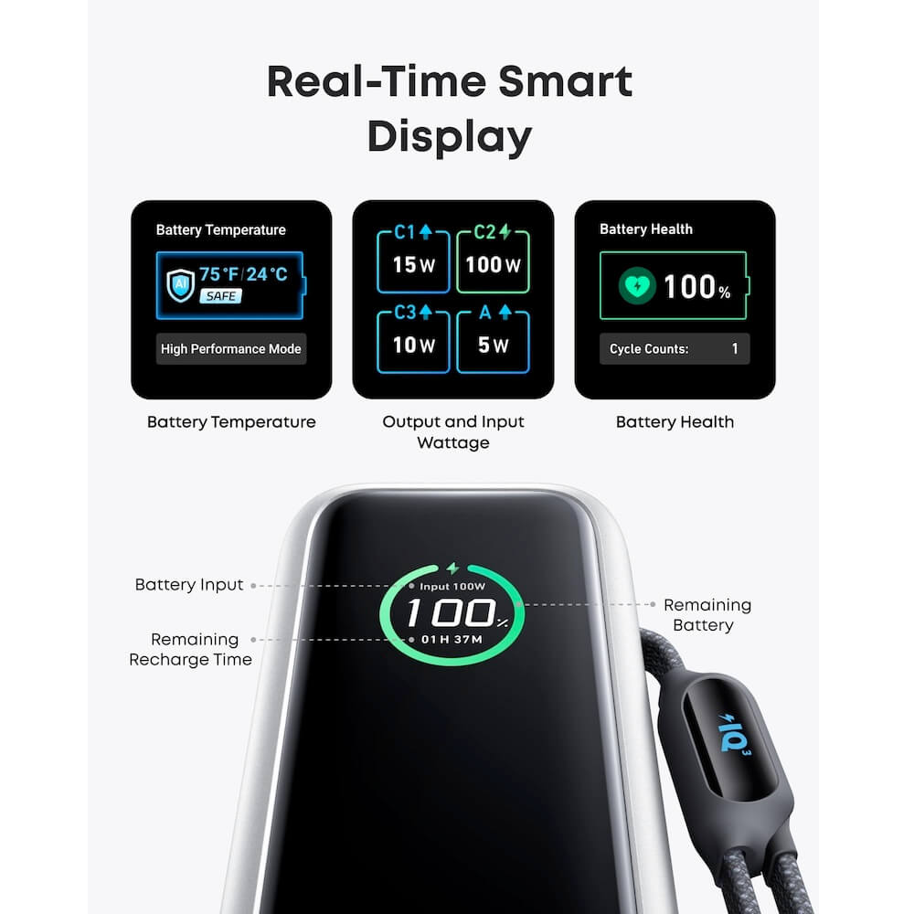 Открийте мощността и удобството на Anker Laptop Power Bank With Built-In Retractable Cables 25000 mAh 165W, модел A1695H11. Тази външна батерия е идеалното решение за зареждане на вашите устройства в движение.