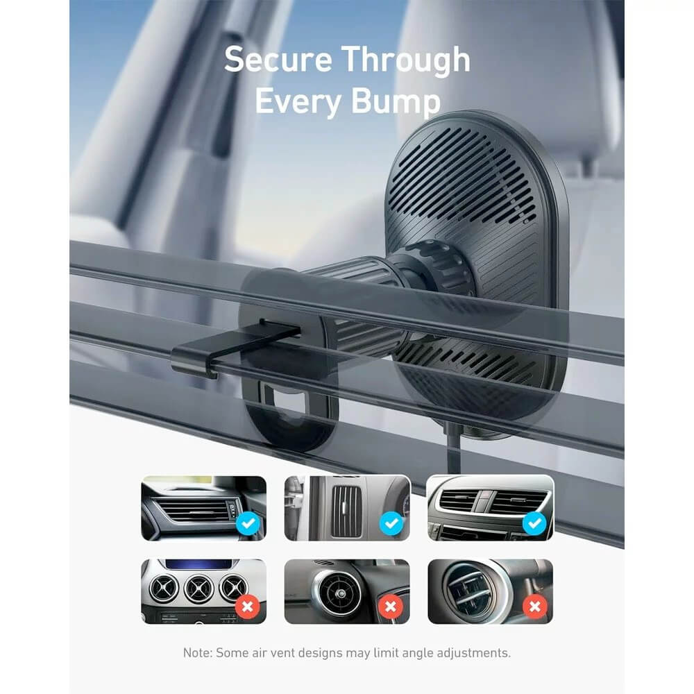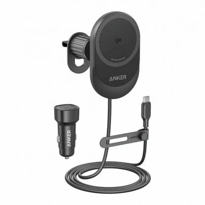 Anker MagGo Magsafe Wireless Car Charger Mount 15W with Car Charger - поставка за радиатора на кола с безжично зареждане и зарядно за кола за iPhone с Magsafe (черен)