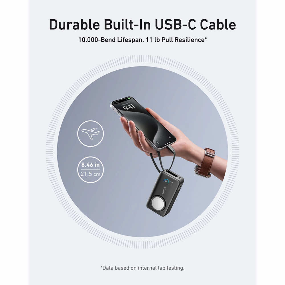 Anker MagGo Power Bank 10000mAh 35W - преносима външна батерия вграден USB-C кабел, USB-C порт и зареждане на Apple Watch (черен)