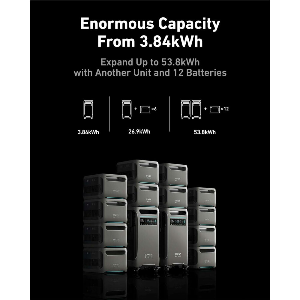 - Капацитет: 3840Wh, с възможност за разширение до 26,9 kWh.