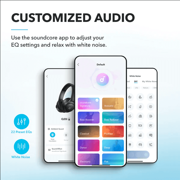 - Персонализиране чрез приложение: Настройте звука си с 22 предварителни настройки и 3 режима на работа.