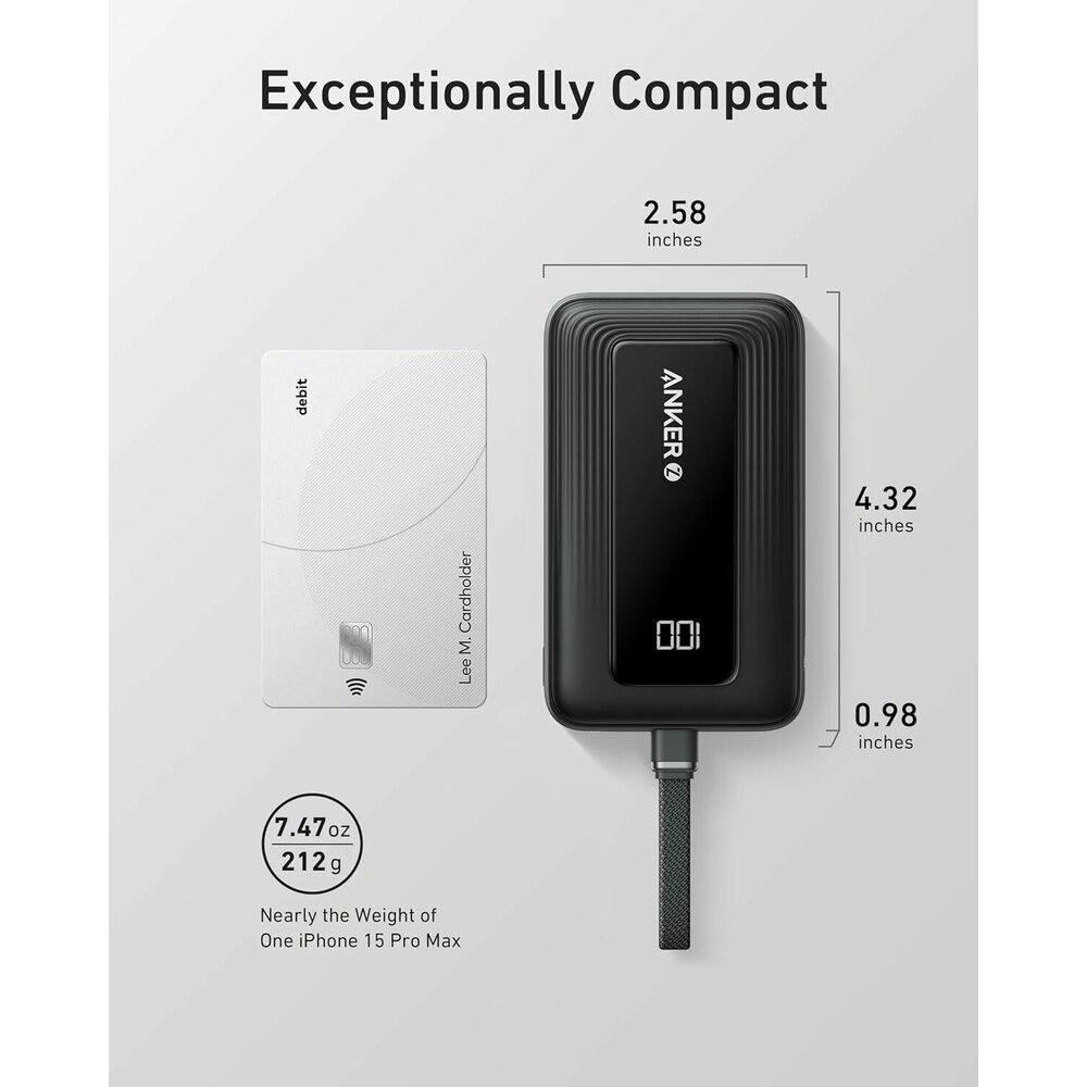 Anker Zolo Power Bank 30W 10000 mAh - външна батерия с вграден USB-C кабел, USB-C и USB-A портове и технология за бързо зареждане (черен)