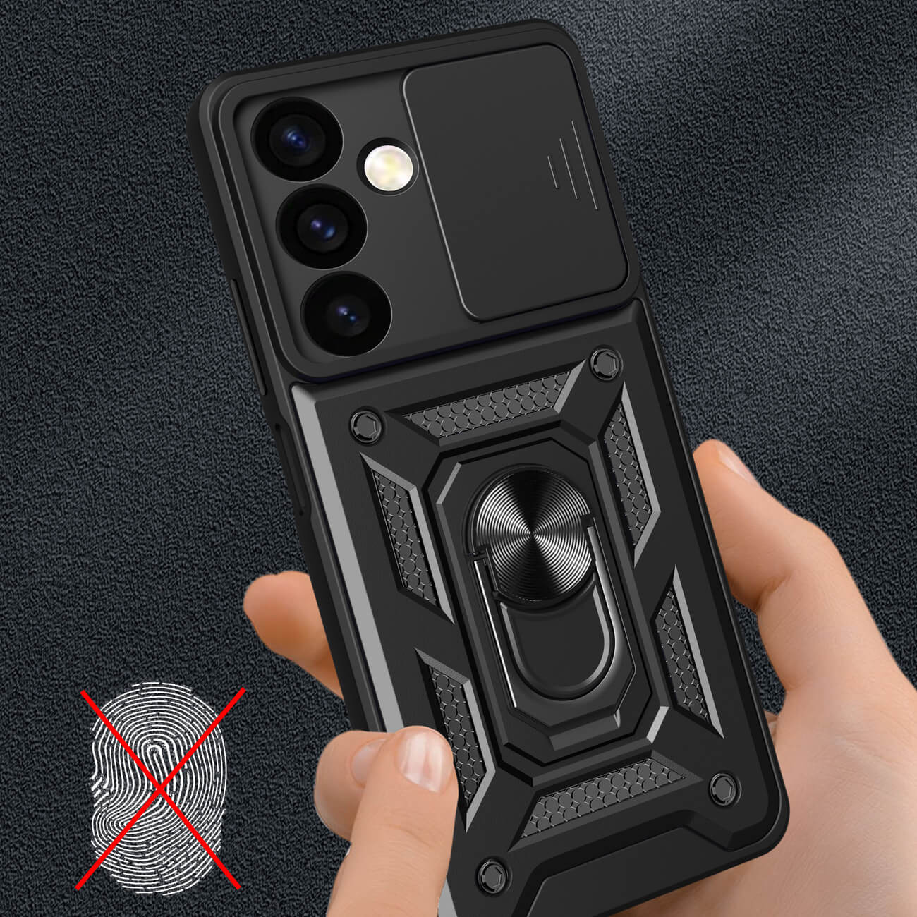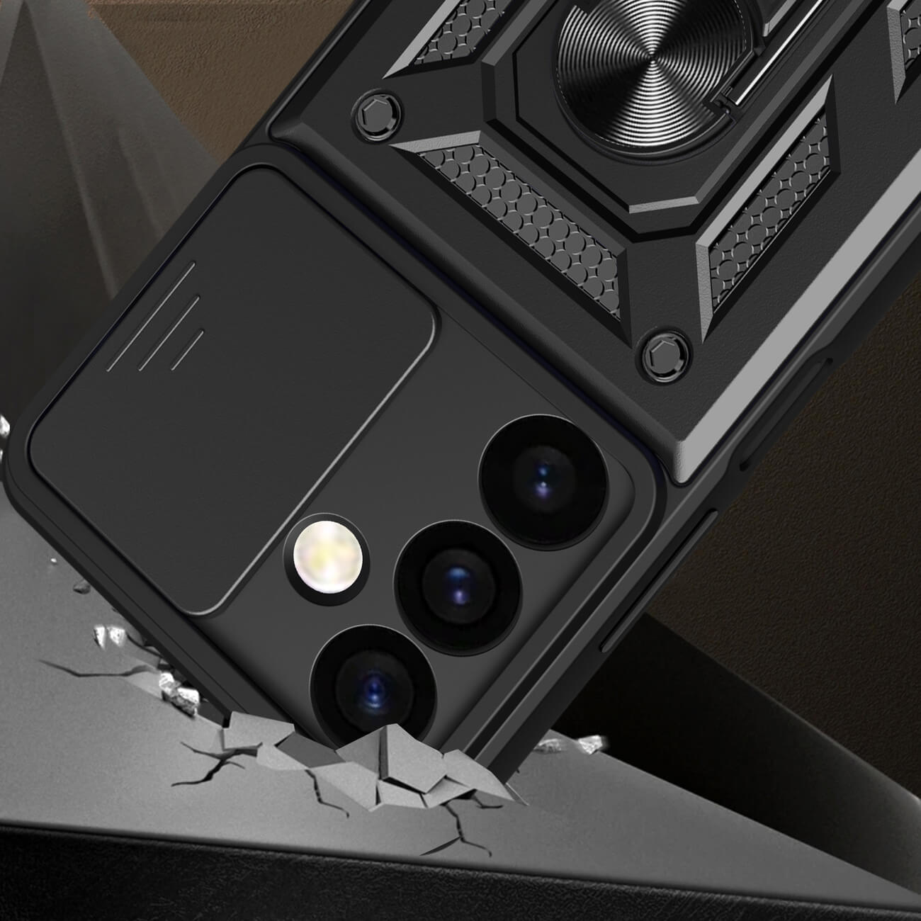 Armor Camshield Hybrid Case With Stand - хибриден удароустойчив кейс с пръстен против изпускане за Samsung Galaxy S24 Plus (черен)