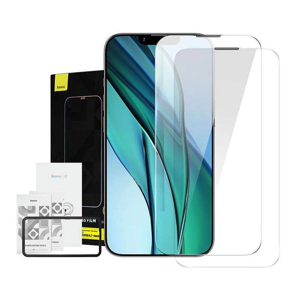 Baseus Crystal Dust Proof Tempered Glass Set (SGJC040202) - 2 броя стъклени защитни покрития за дисплея на iPhone 14 Plus, iPhone 13 Pro Max (прозрачен)
