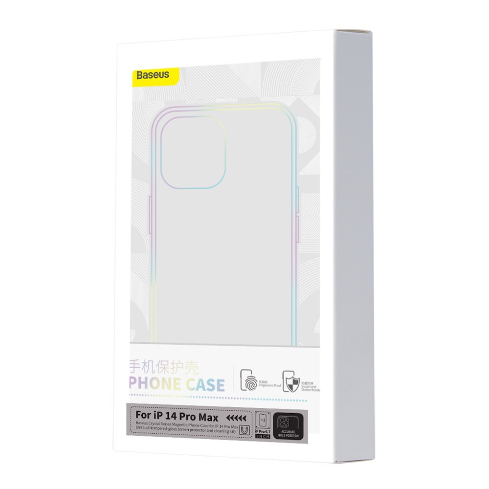 Baseus Crystal Magnetic Case Set (ARSJ011202) - поликарбонатов кейс с MagSafe и стъклено защитно покритие за дисплея за iPhone 14 Pro Max (прозрачен)