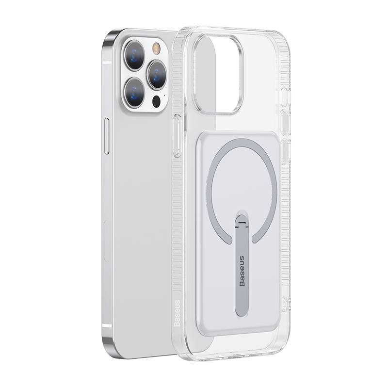 Baseus Crystal Magnetic Glass Case With a Bracket - хибриден удароустойчив кейс с MagSafe и вградена поставка за iPhone 13 Pro (прозрачен)