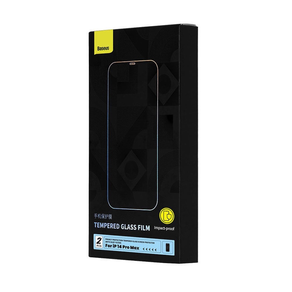 Baseus Crystal Series Privacy Tempered Glass Set (P60012018201-00) - калено стъклено защитно покритие с определен ъгъл на виждане за дисплея за iPhone 14 Pro Max (2 броя)