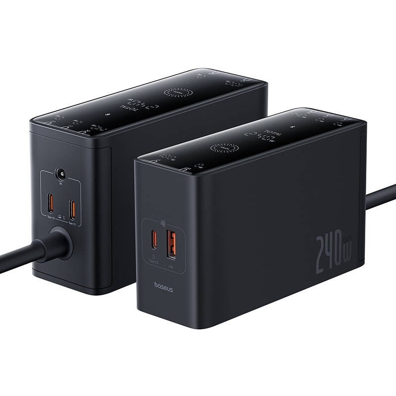 Baseus Digital Charger GaN 240W (P10163901113-00) - захранване за ел. мрежа за лаптопи, смартфони и таблети с USB-A и 3xUSB-C изходи с технология за бързо зареждане (черен)